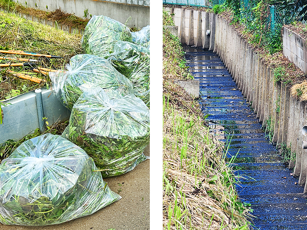 環境保全活動の一環として、水路を守り、地域河川の保全に努めています。
